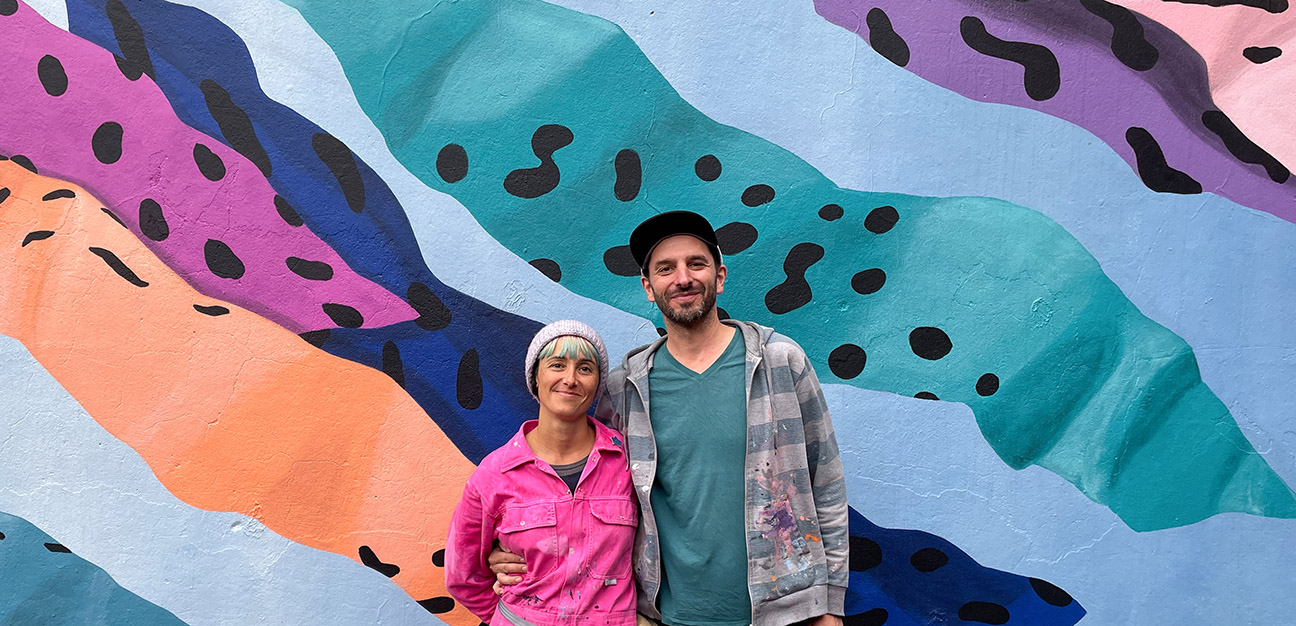 Mit großformatigen und ortsprägenden Murals nimmt das Duo Bezug auf den jeweiligen Kontext und findet eine malerische Übersetzung für Papier- und Siebdruckästhetik. Wegweisend war dabei ihr erstes Mural „Face Time“ 2015 in Berlin. Weitere Beispiele sind ihre Wandbilder am Museum Utopie und Alltag (Beeskow 2019) und an der Genezarethkirche (Berlin 2023).